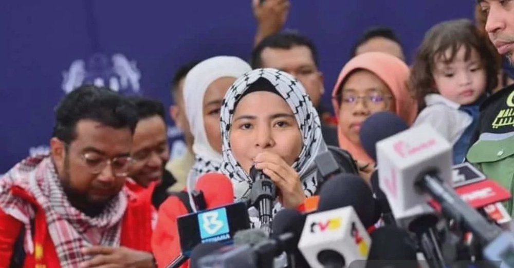 Ardell Aryana rebah sebaik menghampiri pintu bas yang membawa sukarelawan Global Sumud Flotilla (GSF) dan keluarga masing-masing keluar dari Lapangan Terbang Antarabangsa Kuala Lumpur (KLIA) di sini, malam tadi.