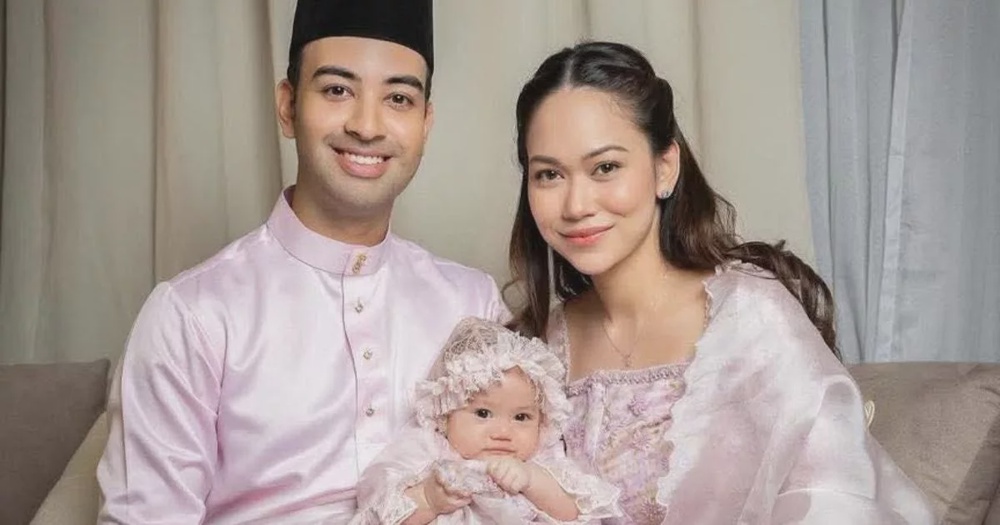 Menerusi Instagramnya, Raysha memuat naik gambar sekeluarganya di pagi raya sekaligus memperkenalkan wajah si comel Raiya Nadine.