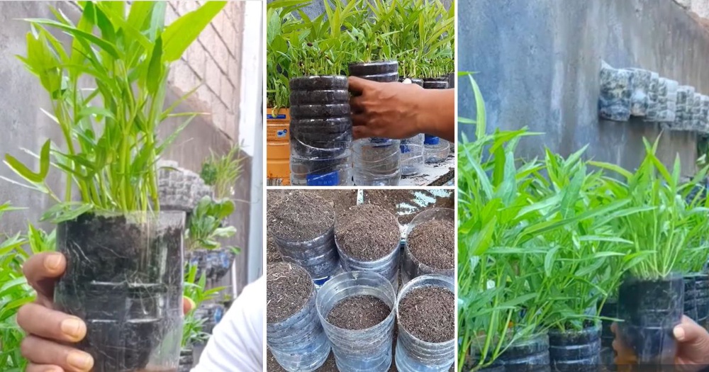 Jika di rumah ada banyak botol plastik ini, boleh guna semula untuk buat tanam sayur. Selain kangkung boleh juga guna cara ini untuk tanam sayur sawi atau bayam.